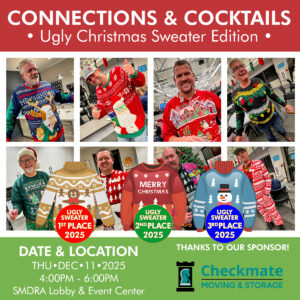 Will you take home the ‘Ugly Christmas Sweater’ top prize in 2025? Join us for a festive Connections & Cocktails edition and wear your favorite ‘Ugly Christmas Sweater’. You could win the top prize and bragging rights for 2025!