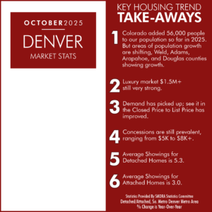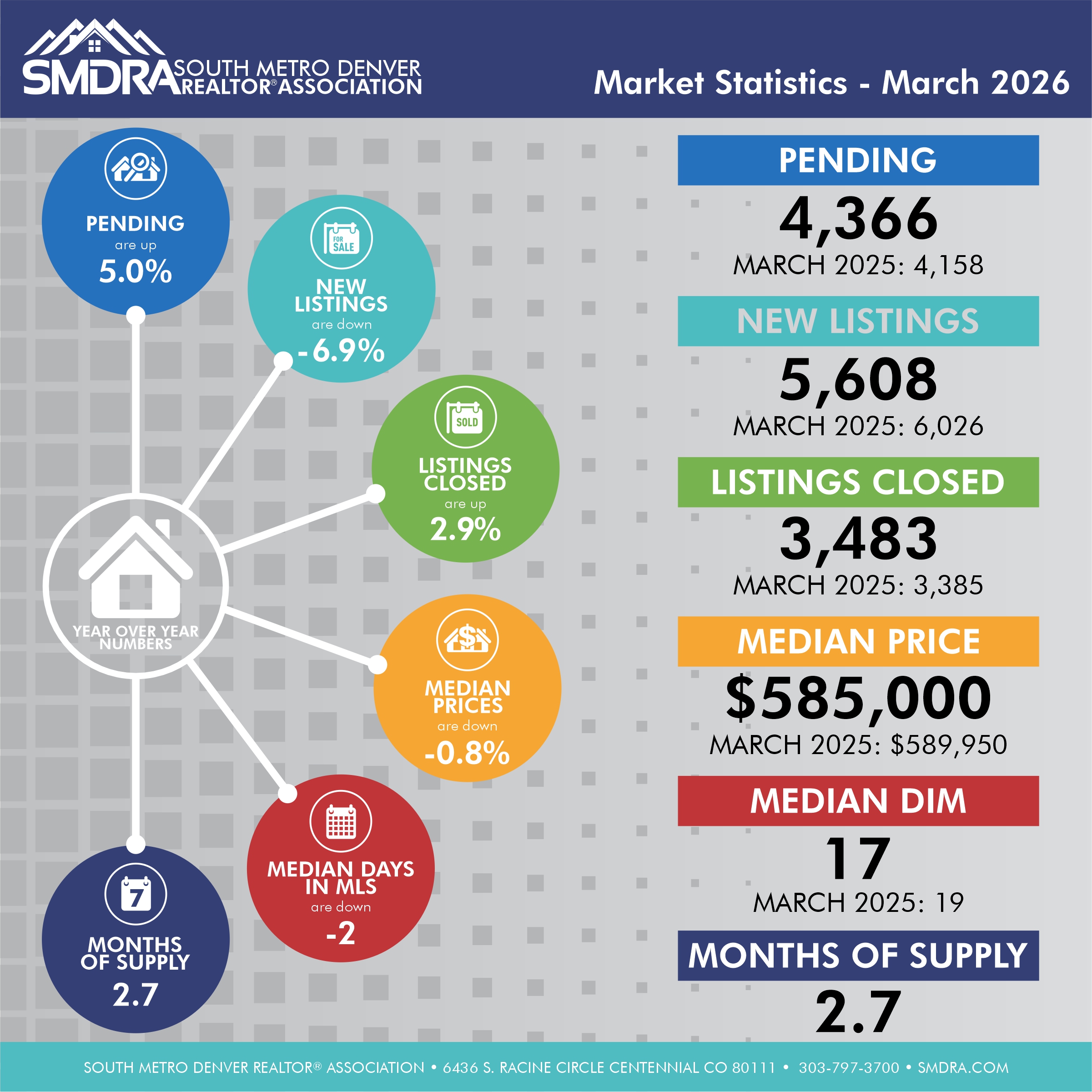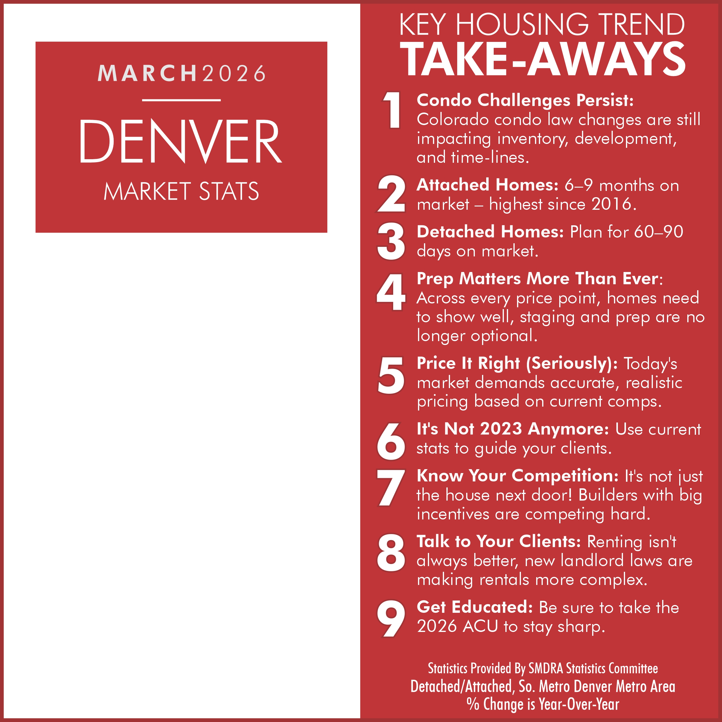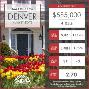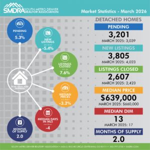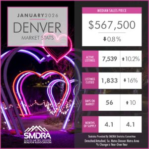 As a member benefit, SMDRA and the Statistics Committee will provide you with the latest statistics to help keep you informed on current market conditions. Our comprehensive collection of housing market data, fresh from REcolorado is everything you need to showcase to your network and clients that YOU are the expert in the Real Estate industry. We encourage you to share as many of these resources as you can with your clients and network, and be sure to explore all the REcolorado data has to offer.