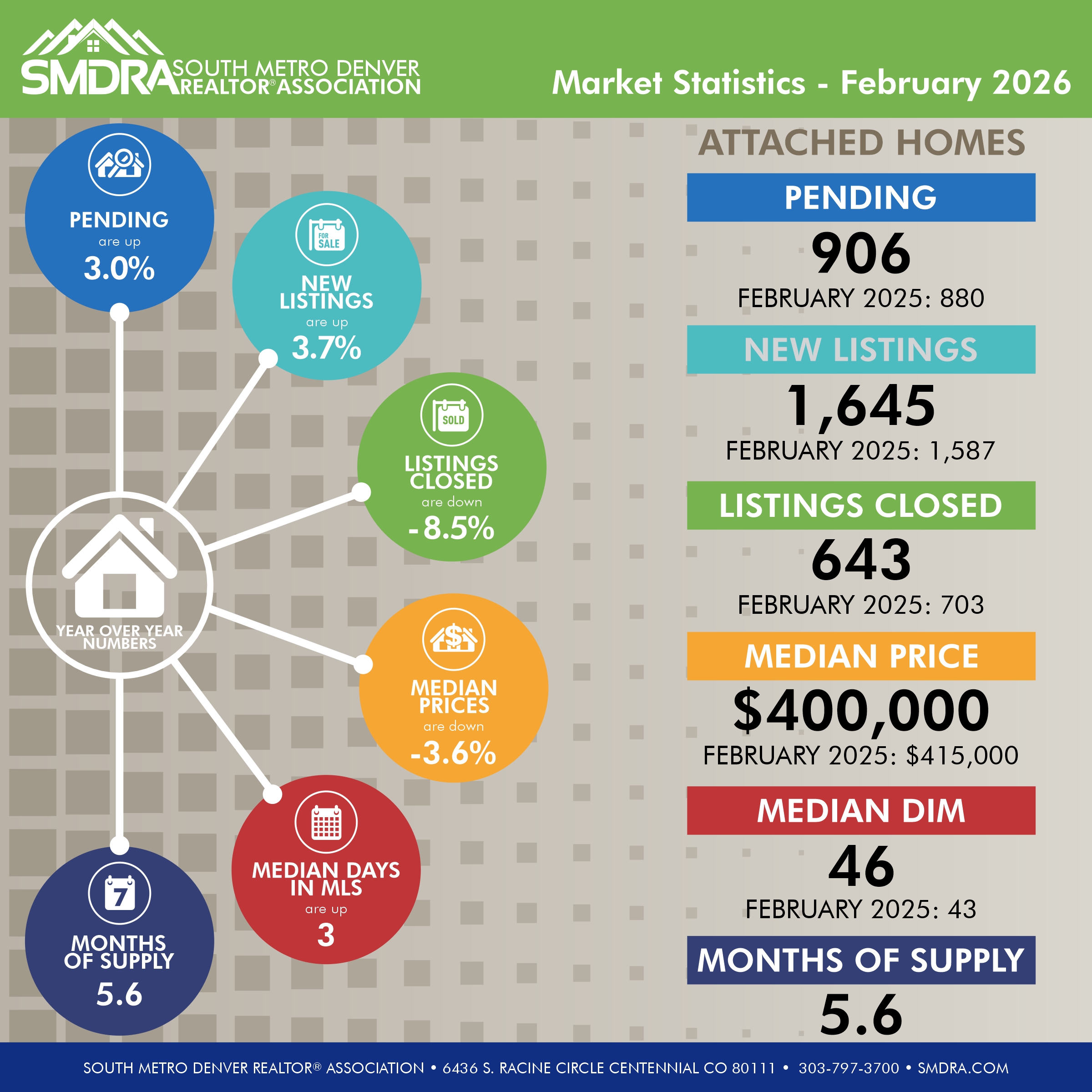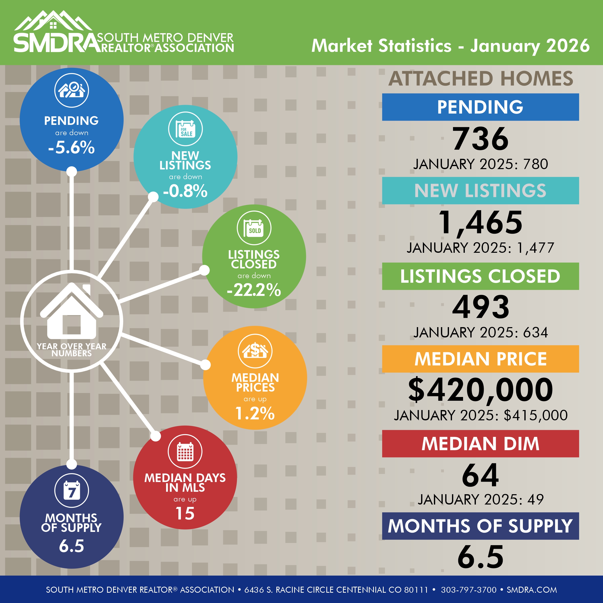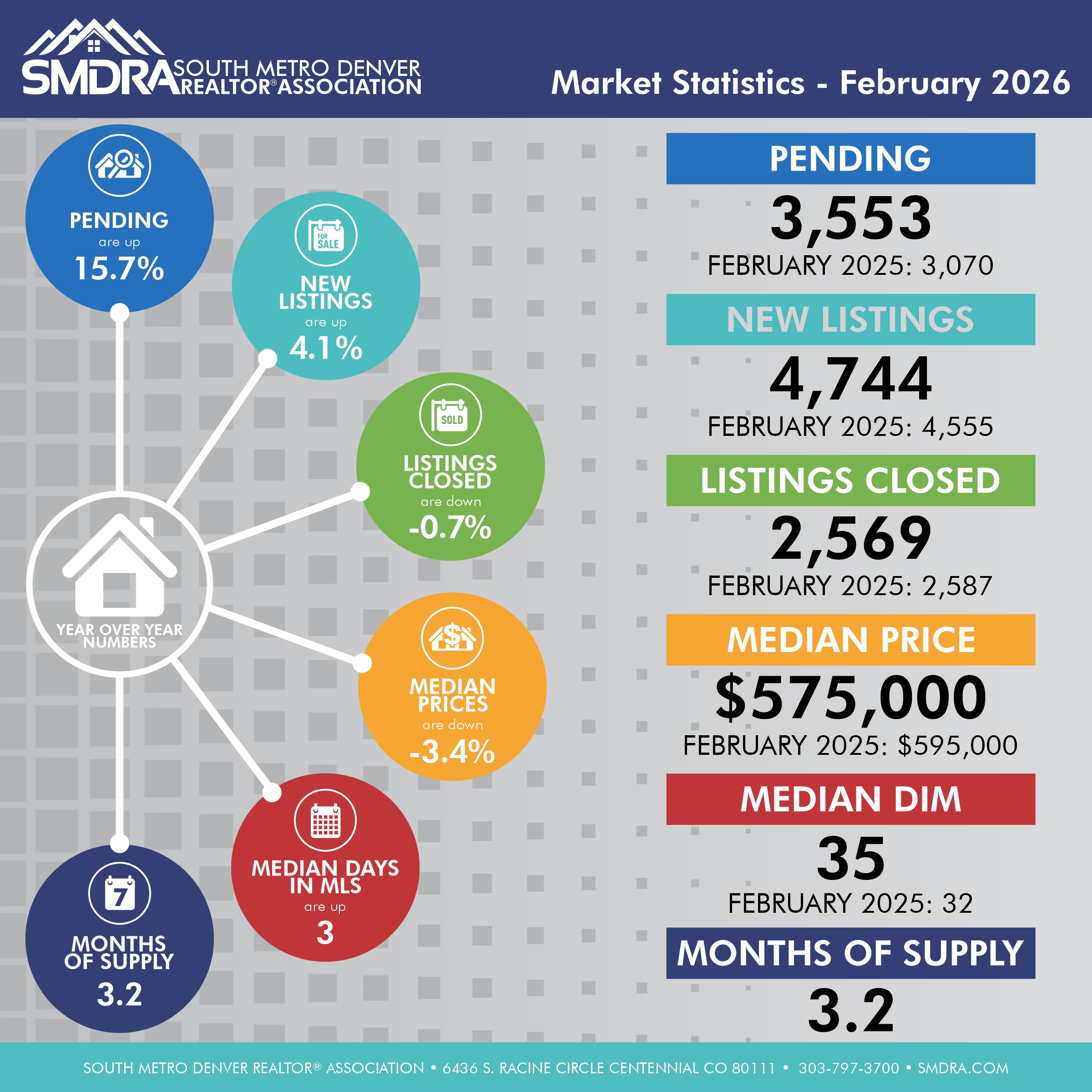 SMDRA uses a 7 County Metro for all Statistical information provided unless otherwise specified, which includes: Adams, Arapahoe, Broomfield, Denver, Douglas, Elbert, and Jefferson counties.