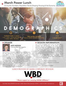SESSION INFORMATION: Join us for an insightful Power Lunch with Kate Watkins, Colorado State Demographer, as she shares the latest population estimates and projections from the Colorado State Demography Office. This session will explore key demographic trends shaping Colorado’s housing market and economy, including net migration patterns, an aging population, and where growth is (and isn’t) happening across the state. Kate will also highlight recent research on Colorado’s statewide housing shortfall and housing needs assessment, offering valuable context to help REALTORS® better understand market pressures, future demand, and the bigger picture influencing housing policy and planning.