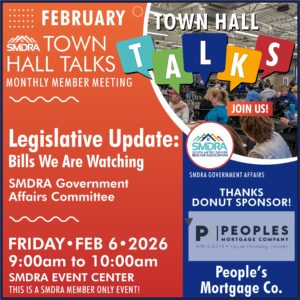 Join us for February Town Hall Talks as we break down the real conversations happening at the Capitol and the bills we’re watching closely. Learn what’s on the table, what could change, and how SMDRA and our REALTOR® partners are working behind the scenes to protect your business, your clients, and the future of real estate in Colorado.
