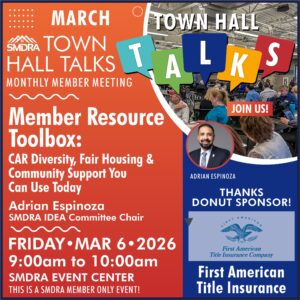 SESSION INFORMATION: Town Hall Talks are on the first Friday of every month. This will be a general SMDRA membership and marketing meeting. An opportunity to catch up on what’s happening at SMDRA, a brief informational presentation, property marketing, buyers and seller’s needs, networking with fellow SMDRA members and OF COURSE DONUTS!
